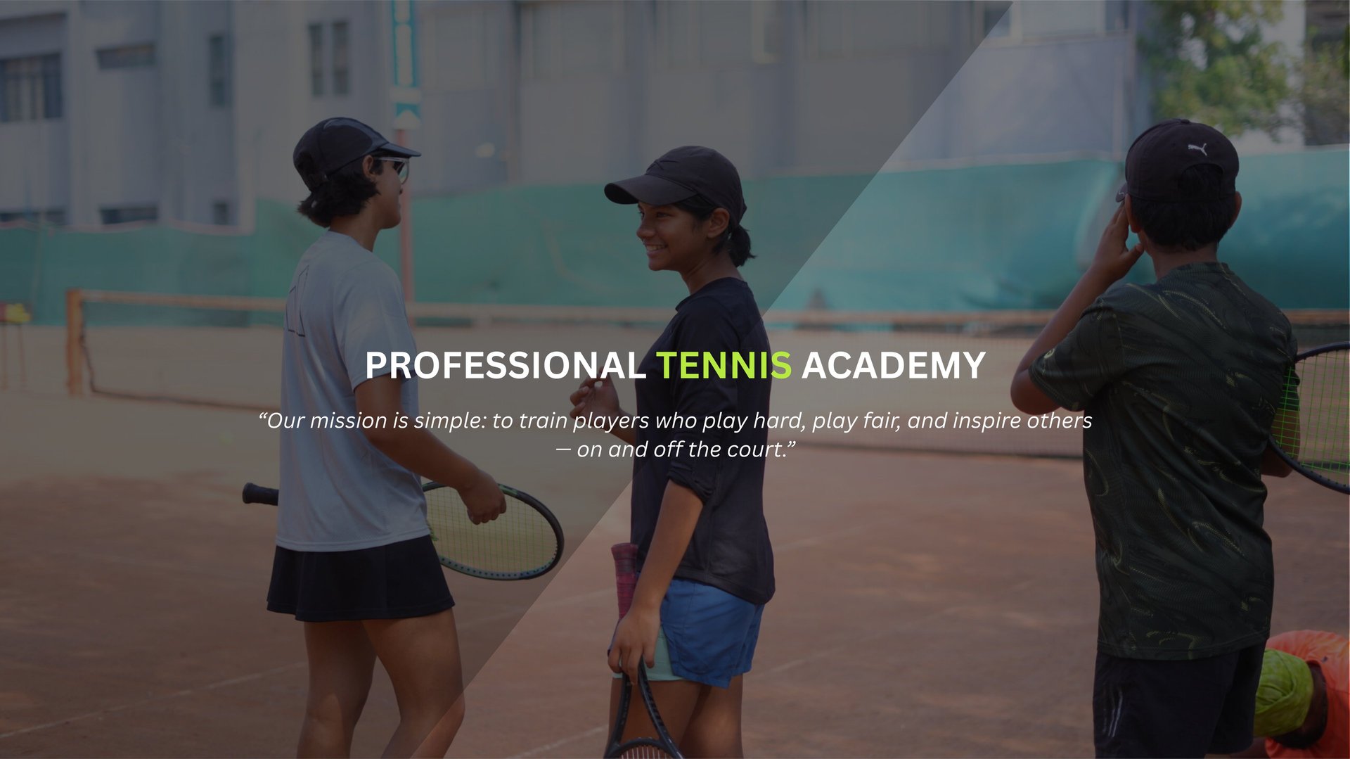 At Professional Tennis Academy, we go beyond technique. Our training is rooted in strong ethical values, fueled by innovation, and driven by a deep passion for the sport. We empower every athlete to rise as a champion — skilled, disciplined, and built to lead both on and off the court.